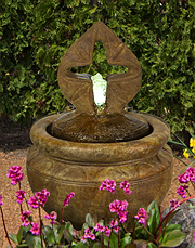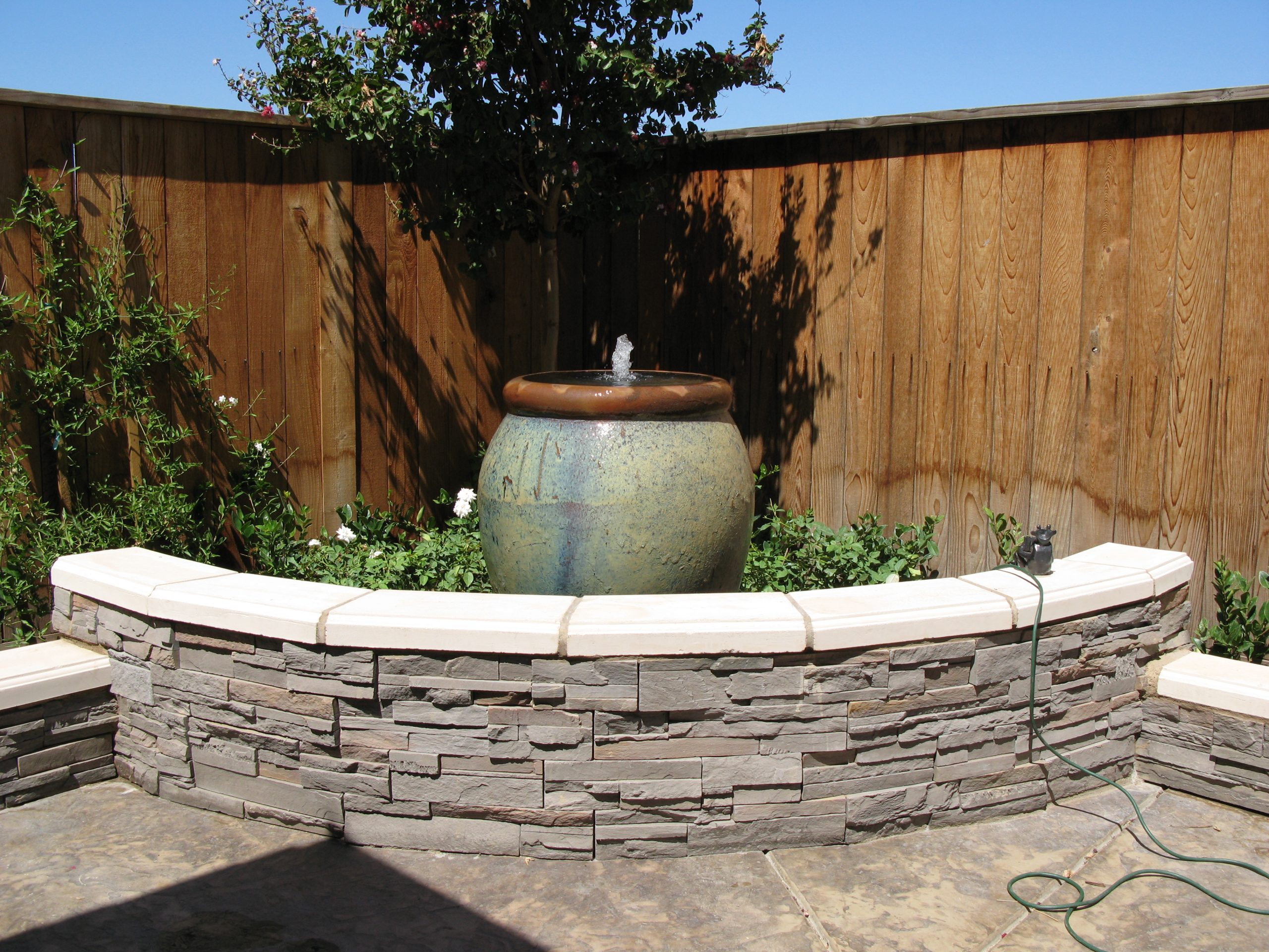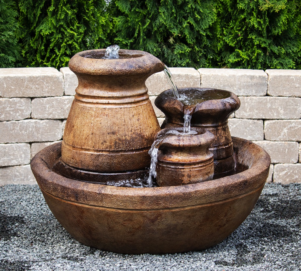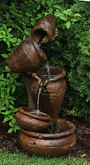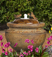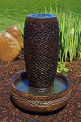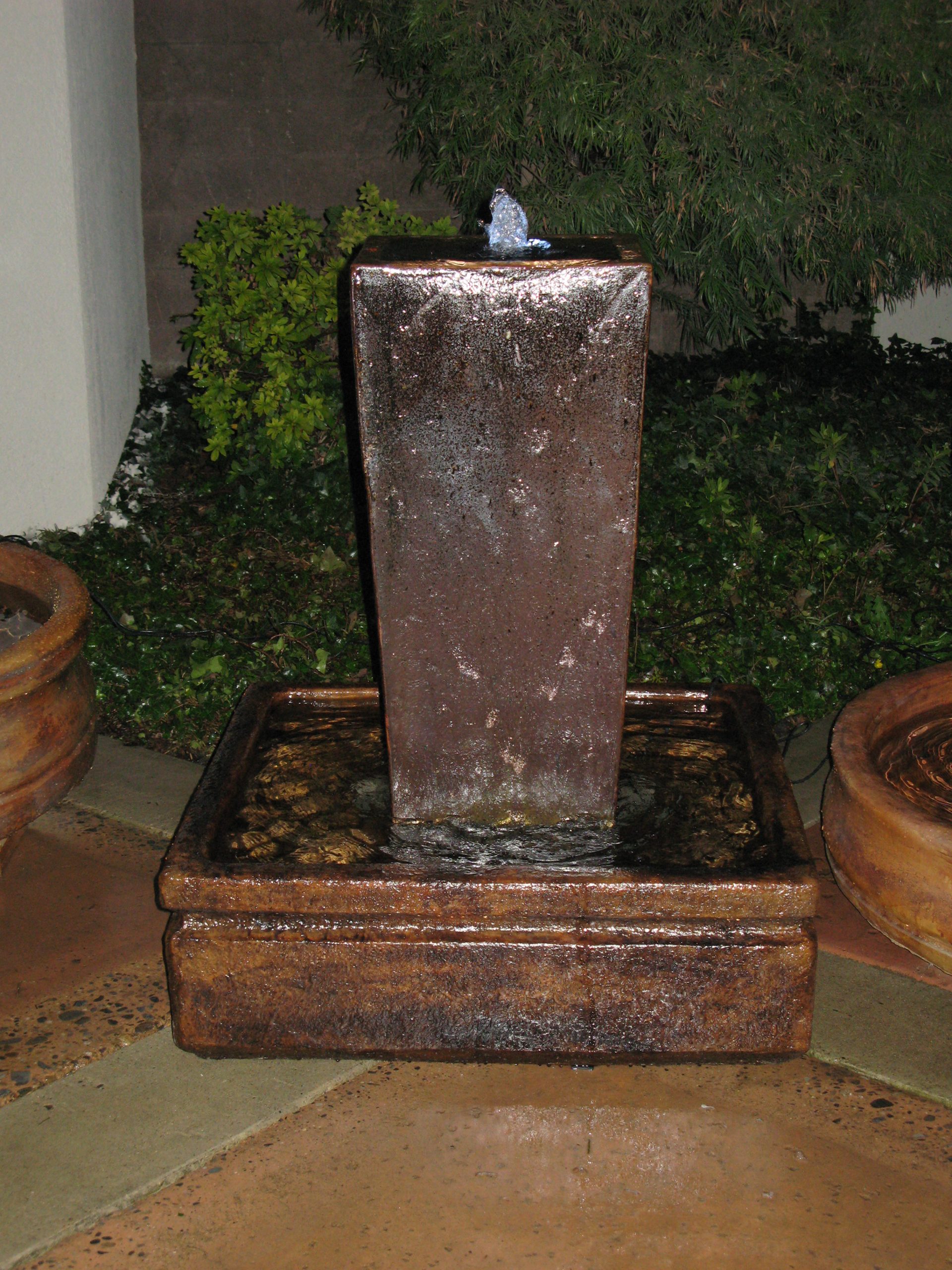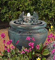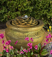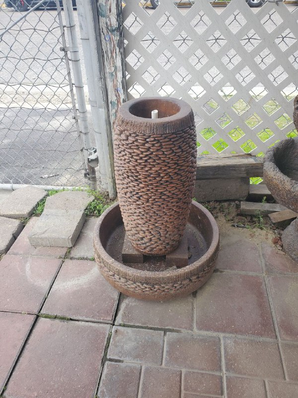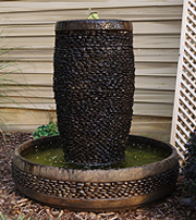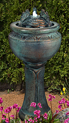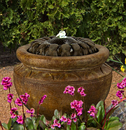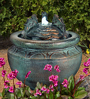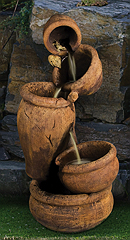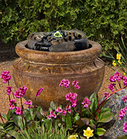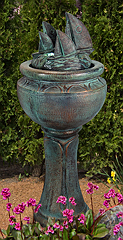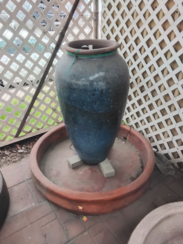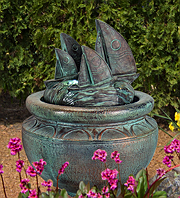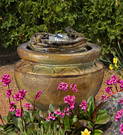 Forewarning, ceramic pot fountains pictured here can not be recreated as ceramic pottery is unique in their design and coloration. We have more ceramic pottery on display at our show room, but what you see is what you get. Concrete pottery will give you more variety as we have many designs we can make for you, and we can paint them in any color you want.