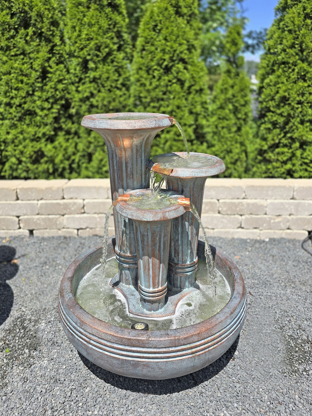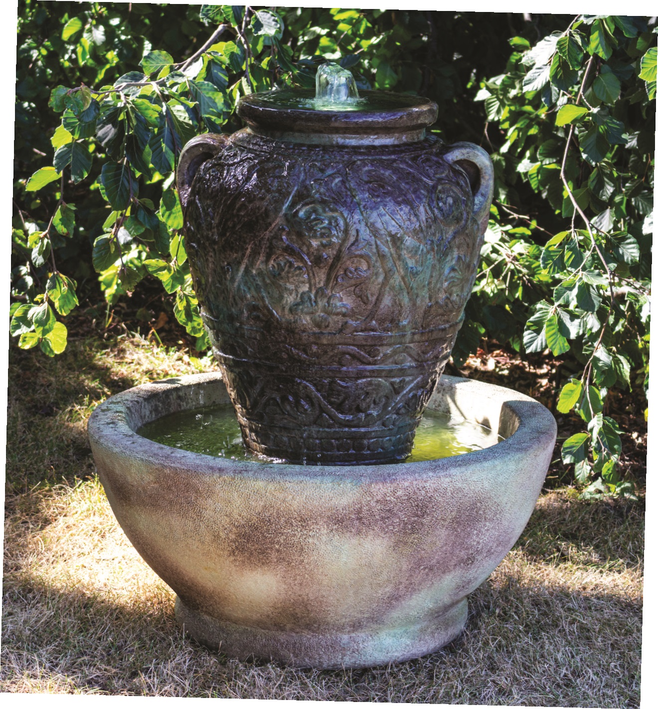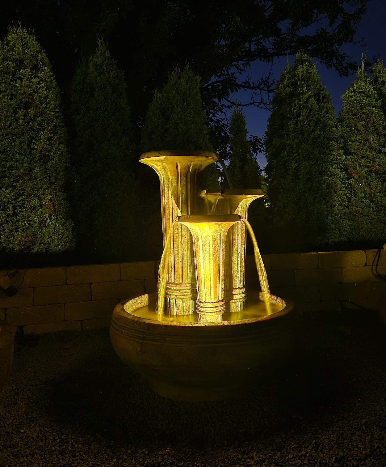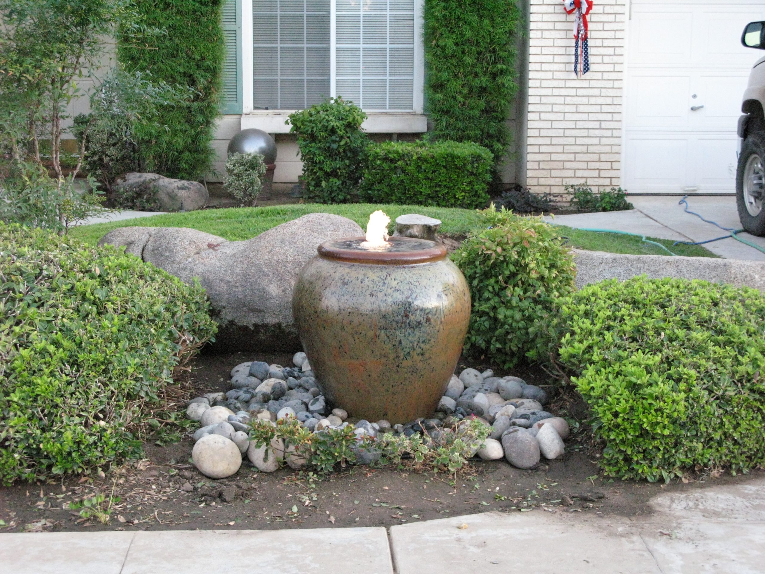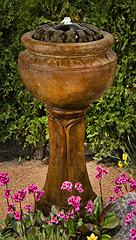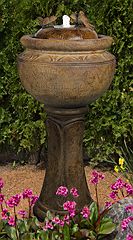 Forewarning, ceramic pot fountains pictured here can not be recreated as ceramic pottery is unique in their design and coloration. We have more ceramic pottery on display at our show room, but what you see is what you get. Concrete pottery will give you more variety as we have many designs we can make for you, and we can paint them in any color you want.